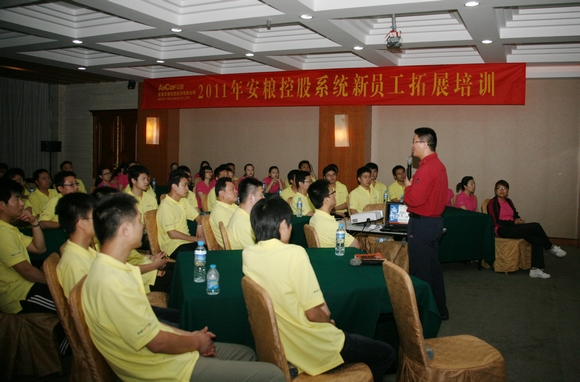 由公司辦公室(人力資源部)精心籌備組織的2011年安糧控股系統(tǒng)新員工文化導(dǎo)入暨拓展訓(xùn)練活動(dòng)于6月10日、11日在馬鞍山盛德軒國(guó)際會(huì)議中心順利舉行。本次活動(dòng)參訓(xùn)人員共計(jì)68人(其中63人參加拓展培訓(xùn)),公司總法律顧問(wèn)儲(chǔ)潔印、辦公室主任潘冬生與新員工一道參加了培訓(xùn)。