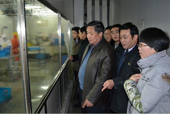 楊成鎖副局長一行實地參觀了安慶安糧的廠容廠貌以及水產(chǎn)加工車間馬哈魚生產(chǎn)線。