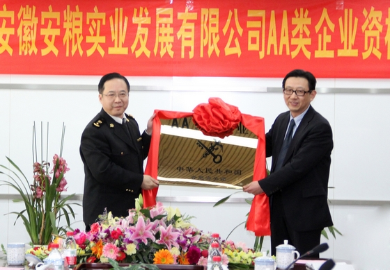 2012年2月2日,“合肥海關(guān)授予安糧實(shí)業(yè)AA類(lèi)企業(yè)授牌儀式”在盛安廣場(chǎng)22樓安糧集團(tuán)會(huì)議室隆重舉行。合肥海關(guān)稽查處處長(zhǎng)謝曉鷗、現(xiàn)場(chǎng)業(yè)務(wù)處處長(zhǎng)李永春,安徽國(guó)貿(mào)集團(tuán)董事長(zhǎng)、黨委書(shū)記范陽(yáng),省商務(wù)廳貿(mào)管處處長(zhǎng)夏勇,安糧集團(tuán)董事長(zhǎng),安糧控股副總裁葛志毅等有關(guān)領(lǐng)導(dǎo)以及安糧實(shí)業(yè)董事長(zhǎng)石紅、總經(jīng)理周洪等出席了授牌儀式。安糧實(shí)業(yè)有關(guān)部門(mén)負(fù)責(zé)人和業(yè)務(wù)人員參加了授牌儀式。
