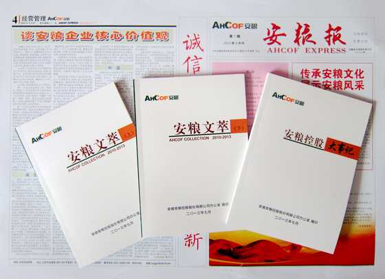 經(jīng)省新聞出版局批準,9月中旬,公司內(nèi)刊安糧報在試刊三期后正式創(chuàng)刊出版。國貿(mào)集團范陽董事長專門發(fā)來賀信,對安糧報創(chuàng)刊表示祝賀。同時,由辦公室編印的包括上級領(lǐng)導、安糧高管層和基層員工在公司網(wǎng)站發(fā)布的文章匯編——《安糧文萃》(上下冊)、內(nèi)容包括各子公司三年來重大事項的資料記錄——《安糧控股大事記》,也印發(fā)至各單位。