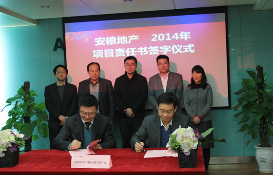 會議還聽取了各部室和各項目公司年度工作總結和計劃匯報,并在所有與會人員的見證下,臨沂、蕭縣、安福、東怡、和縣、銅陵、徐聞7個項目公司負責人與總經(jīng)理汪勇簽署了2014年經(jīng)營目標責任狀。