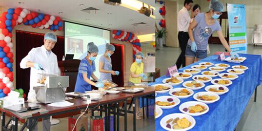 此次活動(dòng)現(xiàn)場(chǎng)展示了6個(gè)“田田屋”暢銷品種:米蘭蝦餅、冰爽山芋、米蘭魷魚藕餅、香酥薯片、香酥牛蒡和玉米烙?;顒?dòng)現(xiàn)場(chǎng)專業(yè)人員現(xiàn)場(chǎng)烹制,員工到場(chǎng)品嘗,并對(duì)產(chǎn)品的色澤和口味等進(jìn)行評(píng)價(jià)。活動(dòng)同期還推出了“田田屋”產(chǎn)品售賣專柜,以優(yōu)惠價(jià)向公司員工售賣,受到廣大員工的歡迎。