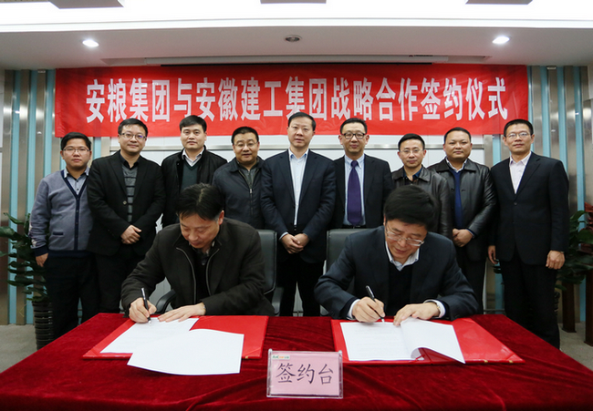 12月3日,安糧集團與安徽建工集團在盛安廣場22樓會議室簽署戰(zhàn)略合作協(xié)議,公司領導方宗友與安徽建工集團副總經(jīng)理許克順分別代表各自公司簽約并講話。安糧控股副總裁曹訓立出席,安糧集團總經(jīng)理助理周洪主持簽約儀式。