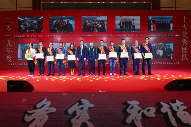 為總結(jié)經(jīng)驗(yàn)、鼓勵(lì)先進(jìn),集團(tuán)對2019年度涌現(xiàn)出的先進(jìn)集體和優(yōu)秀個(gè)人進(jìn)行了表彰,安糧集團(tuán)黨委副書記、紀(jì)委書記孫毅宣讀了《關(guān)于表彰2019年度先進(jìn)集體和個(gè)人的決定》。集團(tuán)領(lǐng)導(dǎo)為合肥建工、安糧國際、安糧實(shí)業(yè)三家“先進(jìn)單位”以及“十大優(yōu)秀團(tuán)隊(duì)”、“十大優(yōu)秀經(jīng)理”、“十大優(yōu)秀員工”進(jìn)行頒獎(jiǎng)。合肥建工陳龍、安糧控股陸召輝、安糧國際張偉分別作為獲獎(jiǎng)代表上臺發(fā)言。