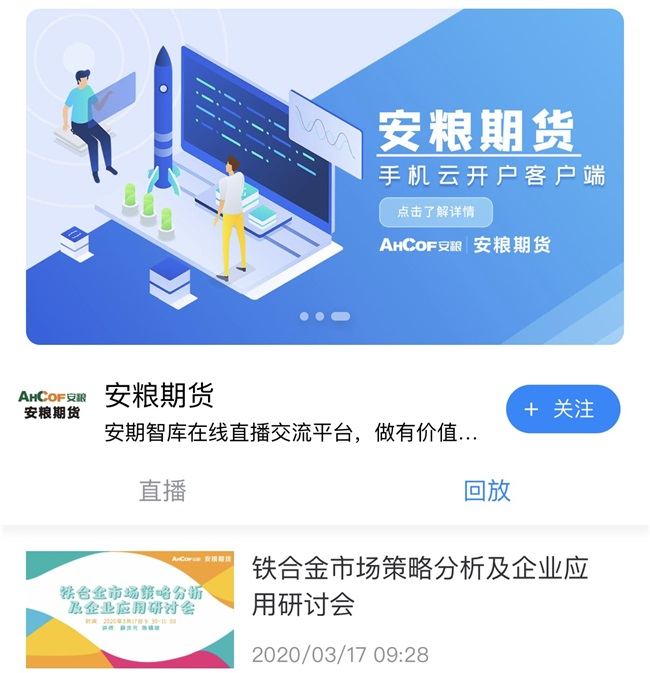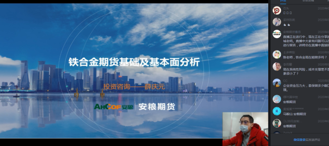 3月17日,安糧期貨利用網(wǎng)絡直播平臺召開“鐵合金市場策略分析及企業(yè)應用研討會”,這已經(jīng)是自疫情發(fā)生以來安糧期貨舉辦的第13場線上營銷會議,有效解決了日常營銷會議無法開展的難題。據(jù)統(tǒng)計已有累計超過11000人次參與了觀看,得到業(yè)界廣泛好評。