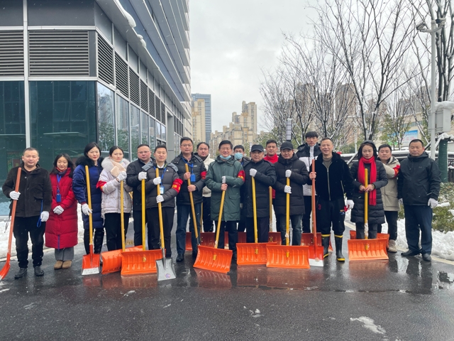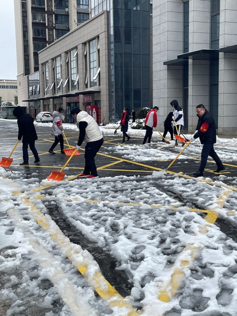 在一個多小時的掃雪除冰過程中,隊員們不畏寒冷,分工有序,配合默契,干勁十足。雖雪水浸入鞋里,臉和手凍得通紅,忙得渾身是汗,但大家掃雪除冰熱情高漲,隊員們的身影在雪的映襯下形成了一道亮麗的風景線。很快,大樓四周的路面、車庫出入口就被打掃干凈,為公司員工的上下班出行開辟了一條洋溢著溫情與關(guān)愛的安全便捷之路。