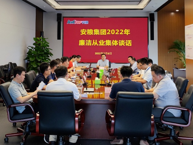 為進(jìn)一步推進(jìn)安糧集團(tuán)黨建工作開展,切實落實黨風(fēng)廉政建設(shè)責(zé)任制,增強(qiáng)安糧集團(tuán)各層級領(lǐng)導(dǎo)干部廉潔自律意識,教育和引導(dǎo)各部門主要負(fù)責(zé)人正確行使手中的權(quán)利,筑牢思想防線,根據(jù)安糧集團(tuán)黨委、紀(jì)委年度工作部署, 7月6日,安糧集團(tuán)對2022年新任職的領(lǐng)導(dǎo)人員開展廉潔從業(yè)集體談話。集團(tuán)黨委副書記、紀(jì)委書記孫毅出席會議并講話,集團(tuán)總助、紀(jì)委副書記仲勁松主持會議。