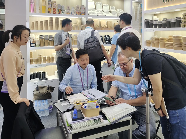 安糧家居展位由安糧國際日用品事業(yè)部攜數(shù)百款單品展出,產(chǎn)品幾乎覆蓋一次性餐廚全套系列。本次展會重點(diǎn)推出了全新的PHA高端系列以及壽司盒、紙盤、甘蔗漿吸管、超細(xì)纖維抹布等新品,在館內(nèi)格外醒目、深受青睞。此外,部門順應(yīng)綠色環(huán)保趨勢,推出了一系列最新環(huán)保產(chǎn)品,吸引了不少具有環(huán)保意識的客戶群體關(guān)注。攤位模擬國外超市擺放,仿造小型超市。擺放的產(chǎn)品統(tǒng)一設(shè)計(jì)包裝,著眼聚焦“產(chǎn)品系列化+全流程服務(wù)”,為全球采購商提供便利的“一站式采購服務(wù)”,獲得新老客戶的一致認(rèn)可與好評。