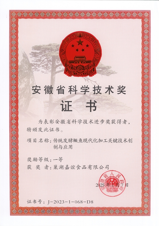 近日,安徽省科學(xué)技術(shù)獎(jiǎng)評(píng)選結(jié)果正式公布,安糧旗下巢湖嘉誼食品有限公司憑借“傳統(tǒng)發(fā)酵鱖魚(yú)現(xiàn)代化加工關(guān)鍵技術(shù)創(chuàng)制與應(yīng)用”項(xiàng)目,榮獲安徽省科學(xué)技術(shù)獎(jiǎng)一等獎(jiǎng)。這一重大科技成果的取得,充分彰顯了安糧堅(jiān)持科技創(chuàng)新驅(qū)動(dòng)發(fā)展、深化產(chǎn)學(xué)研合作的戰(zhàn)略成效。