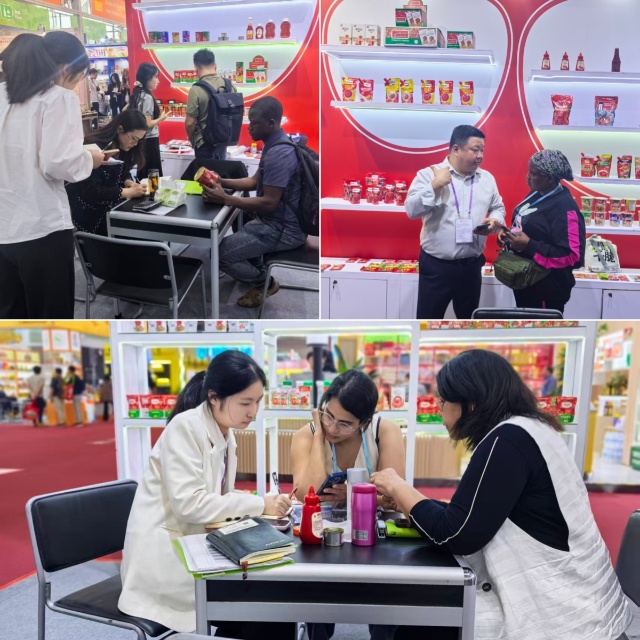在食品展區(qū),本次以番茄沙司系列為核心,不僅推出青椒洋蔥味、蘑菇味等多款差異化創(chuàng)新口味,更搭配PET瓶裝、帶嘴立袋兩種新型包裝,融合獨(dú)特的南美風(fēng)味,憑借高顏值與優(yōu)口感贏得全球采購商青睞,市場反饋熱烈。截至目前,已與非洲、中東、東南亞及“一帶一路”沿線核心市場的采購商,初步達(dá)成十個(gè)貨柜的番茄沙司采購意向,覆蓋多區(qū)域主流消費(fèi)需求。
