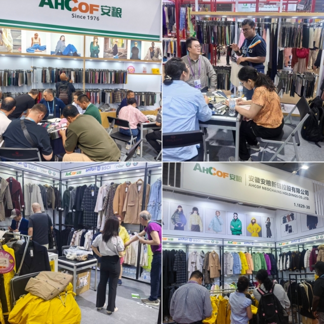 服裝展位則緊扣“綠色環(huán)保”與“工藝創(chuàng)新”兩大趨勢:棉服系列采用再生棉材質(zhì),精準(zhǔn)契合全球低碳消費(fèi)需求;PU雨衣類服裝應(yīng)用高頻工藝,無需縫線即可實(shí)現(xiàn)平整外觀,兼顧視覺美感與實(shí)用性能。這一系列創(chuàng)新產(chǎn)品成功吸引來自法國、英國、比利時(shí)等歐洲中高端市場采購商重點(diǎn)關(guān)注,已有多組客戶明確表達(dá)合作意向。